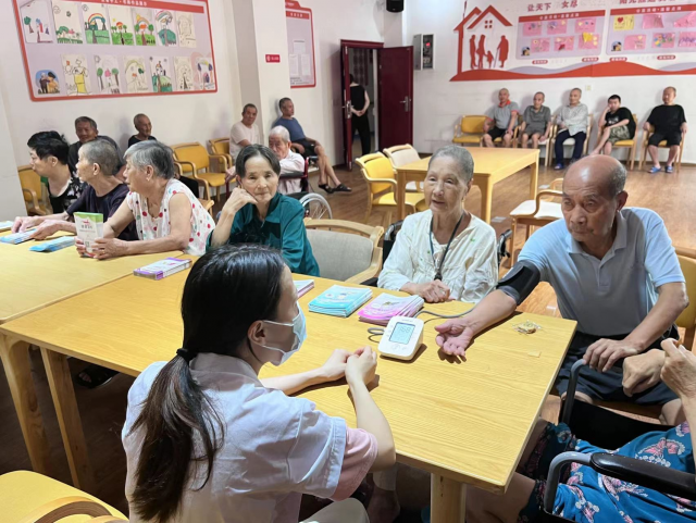 在义诊活动现场,为老年人提供量血压、测血糖,提供中医、内科、健康保健咨询、康复理疗等服务。医护人员通过详细问诊、查体、测血压等了解老年人的身体状况,并就每一位老年人的体检结果给出诊治方案,并逐一进行了用药、保健、饮食等方面的指导,对高龄或体检结果异常的群众,更是反复叮嘱。同时,医护人员还向老年人科普了老年健康管理、老年健康与医养结合、高血压患者健康管理、糖尿病患者健康管理、中医药健康管理等国家基本公共卫生服务政策。宣传积极老龄观和健康老龄化理念,疫苗接种、老年常见病和慢性病防治、伤害预防、应急救助、心理健康、生命教育、运动预防失能等科普科学知识。