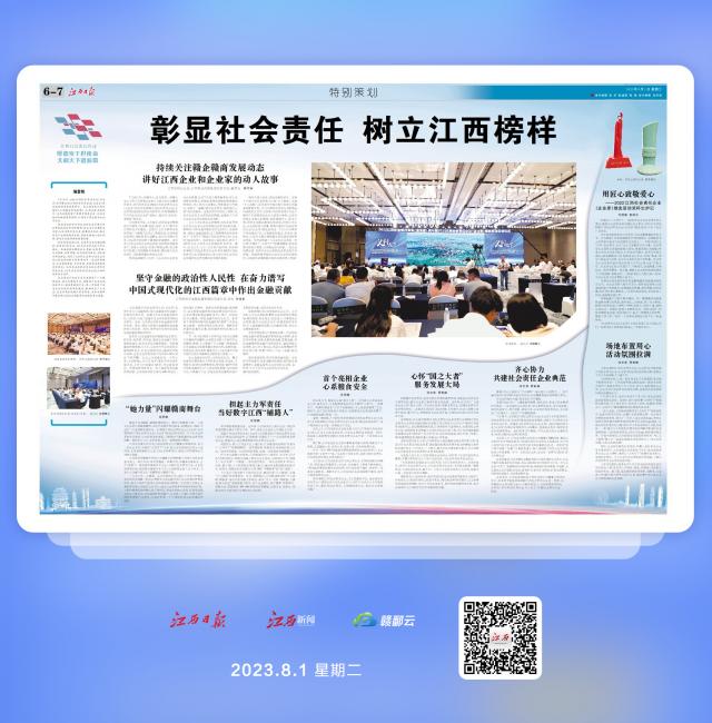 江西日报连版特别策划:彰显社会责任 树立江西榜样