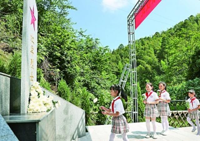 少先队员代表瞻仰红军烈士墓并敬献鲜花。郭弘毅摄