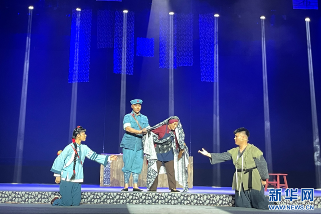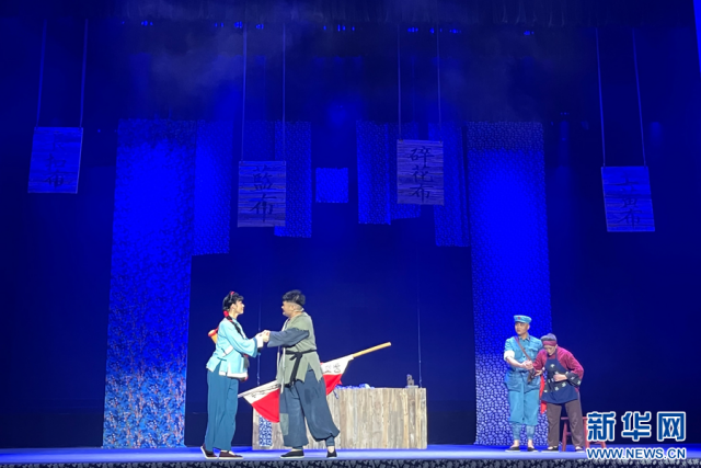 ▲演员们将振奋人心的红色革命故事与地方特色剧种相结合,呈现了一场“活灵活现”的戏剧盛宴。新华网谭茜予摄