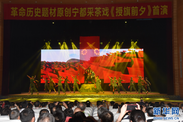 ▲近日,革命历史题材原创宁都采茶戏《授旗前夕》在江西省赣州市宁都县翠微剧院首演。新华网谭茜予摄
