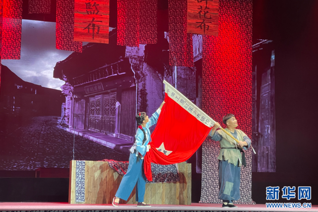 ▲演员们将振奋人心的红色革命故事与地方特色剧种相结合,呈现了一场“活灵活现”的戏剧盛宴。新华网发