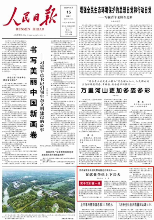 《人民日报》头版报道江西铜鼓县:在就业帮扶上下功夫