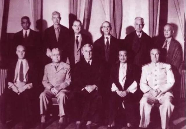 1946年,梅汝璈(前排右二)与其他10名法官在远东国际法庭合影照片。图源环球人物杂志