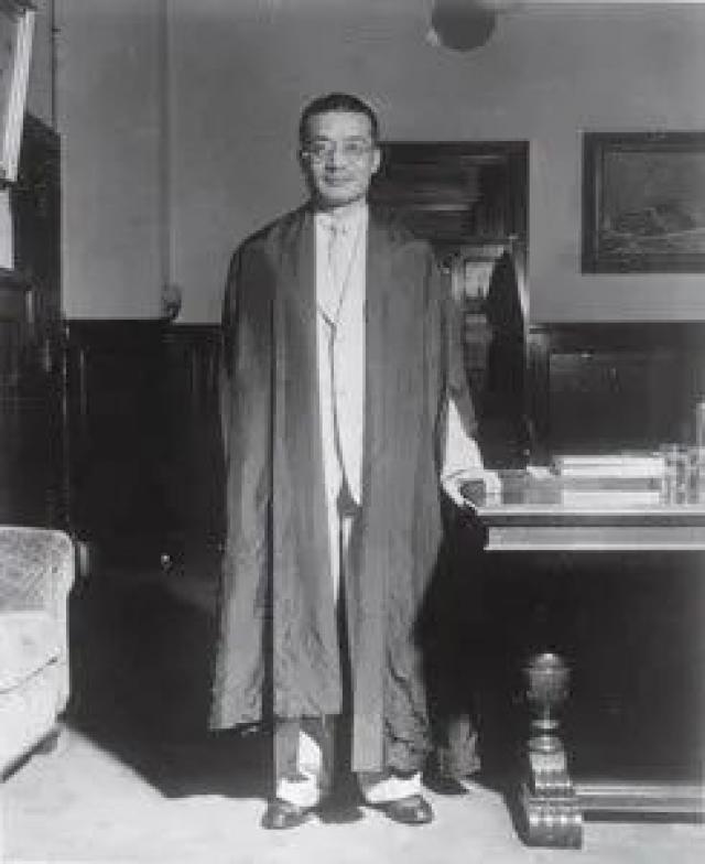 1945年东京审判期间,梅汝璈身着法袍留影。图源环球人物杂志