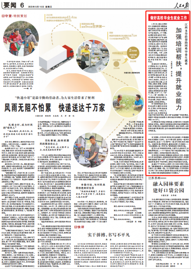 《人民日报》报道江西:江西多举措帮助困难毕业生就业