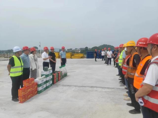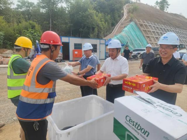 郭峰先后前往上浦高速项目信江特大桥、广丰互通等施工现场,详细询问项目工程进度、安全生产、征地拆迁等情况,了解项目推进过程中存在的实际困难。针对影响项目进度的有关问题,郭峰现场办公、现场协调解决。同时,郭峰代表市委、市政府看望慰问高温酷暑下坚守岗位的一线建设者,为大家送去清凉消暑慰问品,表达问候和敬意。叮嘱上浦公司和施工单位项目管理人员要人性化管理,根据天气情况科学统筹安排施工时序,加强防暑降温措施和劳保用品保障,在做好高温酷暑期间的正常生产同时,加强对务工人员的人文关怀。
