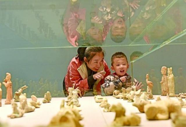 观众在景德镇中国陶瓷博物馆展厅内参观。朱定文摄/光明图片