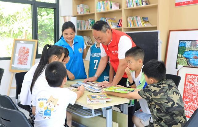 在王云野书记的张罗下,2023年6月中国电信援建的横岗村“童心港湾”正式落成,这里有丰富多彩的图书、益智玩具,更有爱心志愿者的陪伴,自此横岗村的孩子们课余有了更好的去处。