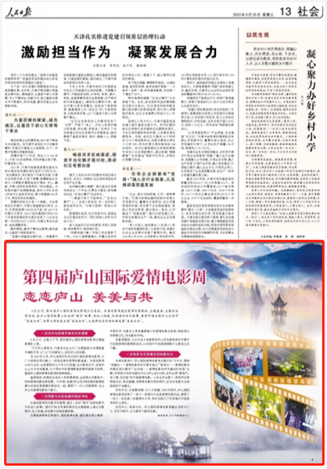 人民日报报道:第四届庐山国际爱情电影周