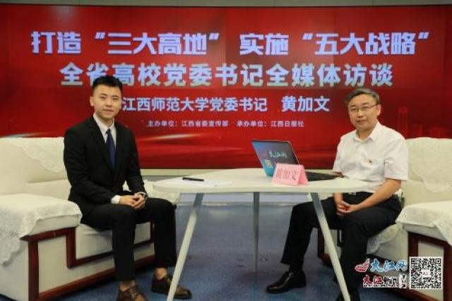 编者按:为深入学习贯彻党的二十大精神,坚定不移走好江西省委十五届四次全会打造“三大高地”、实施“五大战略”的实践路径,扎实推动高校教育强省、科技强省、人才强省的主阵地建设,江西日报社大江网特别推出由江西省委宣传部主办,江西日报社承办的打造“三大高地”实施“五大战略”——全省高校党委书记全媒体访谈。今日推出第四期,嘉宾是江西师范大学党委书记黄加文。