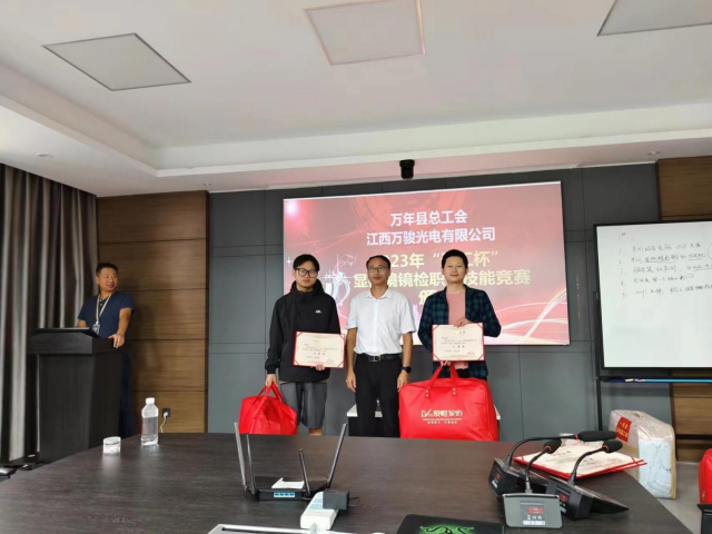 8月31日,由万年县总工会主办,江西万骏光电有限公司承办的万年县2023年“天工杯”劳动和技能竞赛“光刻工艺”和“显微镜镜检”比赛项目在万骏光电生产车间举行,来自该公司各生产线上的20余名职工展开激烈比拼。万年县总工会副主席王卫国、江西万骏光电有限公司副总经理江建兴莅临现场观看并出席颁奖仪式。