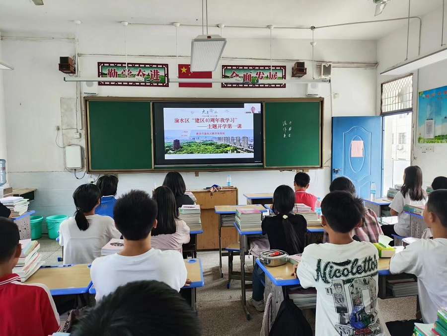 当天上午第三、四节课,姚圩中学组织的各年级各班以“开学第一课”为主题的班会活动精彩上演。课堂上,各班班主任老师首先以“小手拉大手,齐创卫生城”为主题,让学生观看了“渝水区‘建区40周年’我学习”视频,引导他们了解渝水区基本情况、发展变化、文化遗产、工业发展、建置沿革。并在此基础上强调学生平时就要养成良好的卫生习惯,从而达到“教育一个孩子、带动一个家庭、惠及一个小区、影响整个社会”目的。接着在普及食品安全方面,老师提醒同学们购买食物时,要注意生产日期等标识,不买“三无”产品;不食用腐败变质、生虫等异常的食物;少吃油炸、油煎等不健康食品等。在交通安全方面,向同学们普及了摩托车、电动车骑行安全以及上下学途中应遵守的交通规则。在消防安全方面,主要提醒同学们注意用火、用电规范等。其间对“防溺水安全、校园活动安全、校园防欺凌”等方面进行了详细的介绍。最后,班主任老师提醒学生,晚上8点在家通过央视综合频道、“学习强国”学习平台、国家中小学智慧教育平台或央视频,共同收看“开学第一课”直播节目,将“开学第一课”的思想精神落实到日常学习生活中。