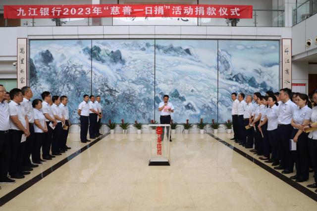 9月5日上午,第8个“中华慈善日”到来之际,九江银行在总行营业部大厅举行2023年“慈善一日捐”捐款仪式,主要行领导出席仪式。各地分行、村镇银行等分会场同步举行。
