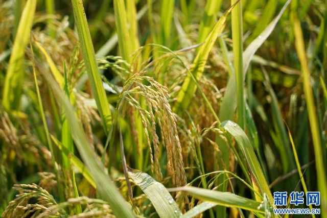 图为在江西省鄱阳县再生稻高产示范片拍摄的处于成熟期的稻穗。新华网王凯丰摄