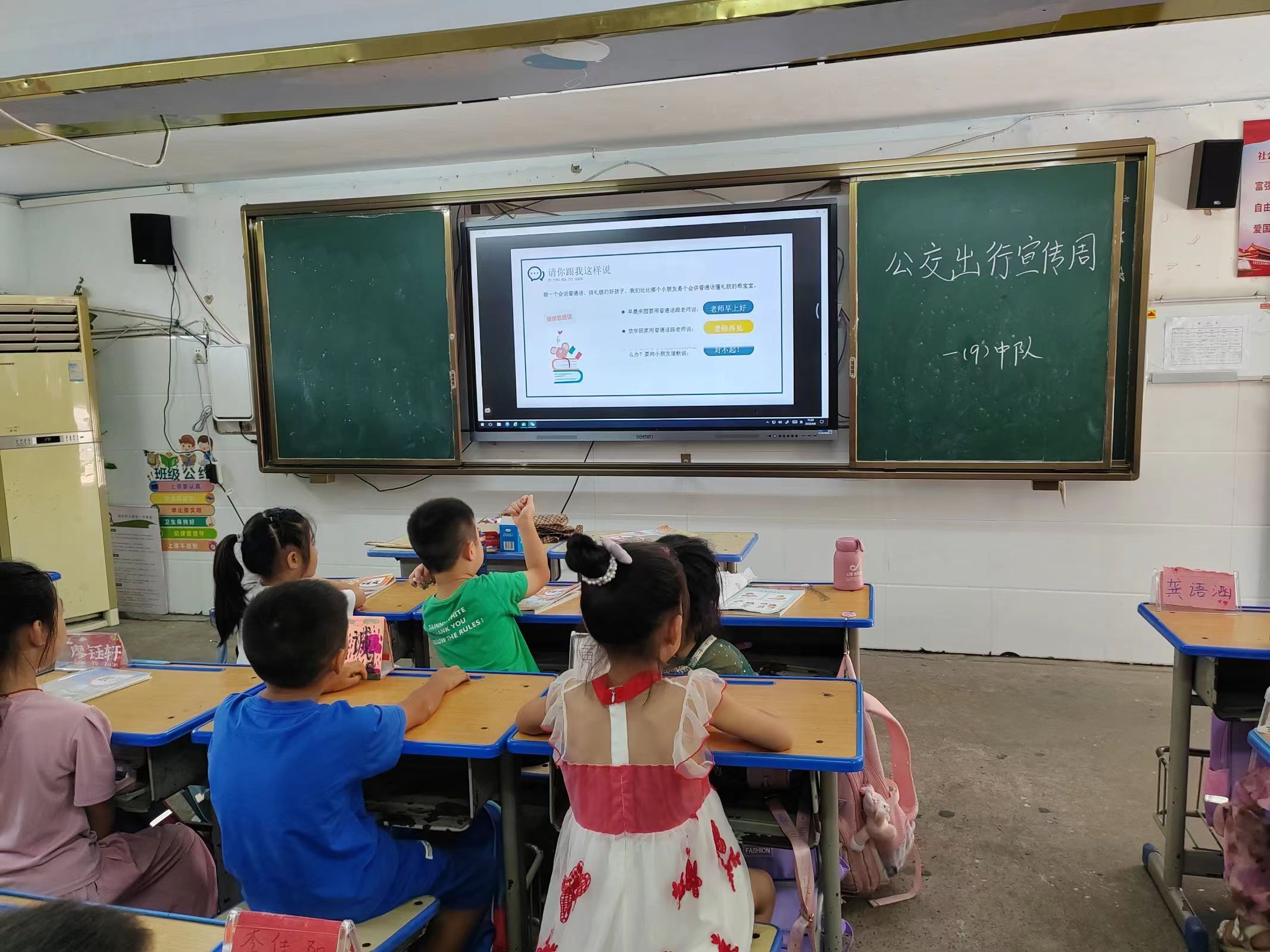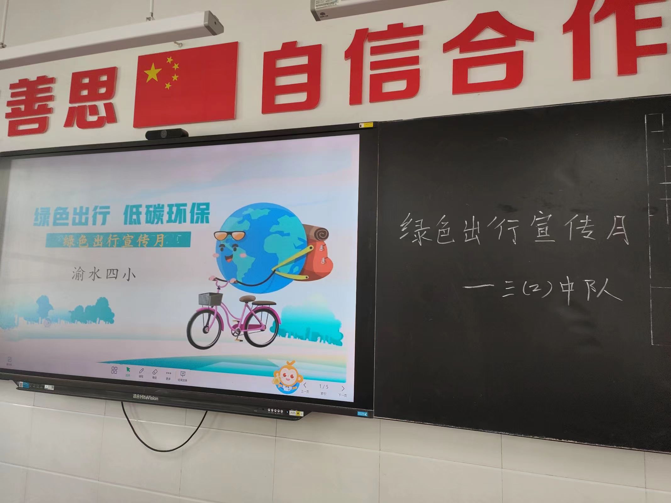 在“绿色出行宣传周”来临之际,渝水四小德育处积极制定实施方案,在校园电子显示屏投放宣传标语,加大宣传力度,力求人人知晓,积极实行。在下午全校的主题队会上,班主任为学生宣传绿色出行的必要性和优势,为我们的城市多一片蓝天,多一丝绿色,多一份健康做出自己的贡献。