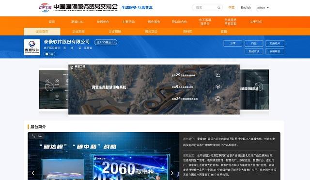 9月2日-9月6日,2023年中国国际服务贸易交易会(简称服贸会)在北京国家会议中心首钢园区盛大举行,并在官网线上同步开展。泰豪软件作为江西省明星企业,在江西省政府的带领下,积极参与双碳和能源领域热点活动,并搭建线上展台云亮相,助力打造江西双碳领域科技新名片。