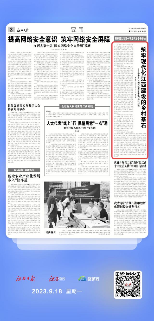 访省乡村振兴局党组书记、局长刘洪:筑牢现代化江西建设的乡村基石