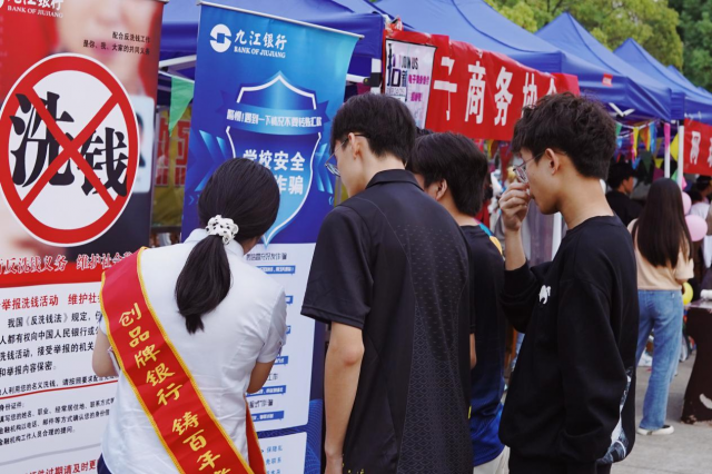 九月正值开学之际,为有效提升高校学生对反洗钱、反电信网络诈骗的认知能力和风险防范意识,帮助高校学生更快速、更准确地辨别洗钱犯罪和电信网络诈骗圈套,9月24日,九江银行开展反洗钱、反电信网络诈骗宣传进校园主题宣传活动。
