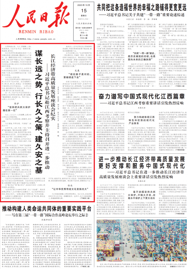人民日报头版头条报道:习近平总书记赴江西考察并主持召开进一步推动长江经济带高质量发展座谈会纪实