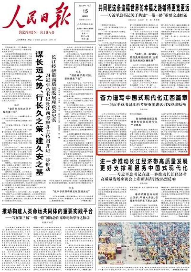 人民日报头版报道:习近平总书记江西考察重要讲话引发热烈反响