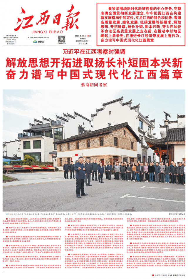 精彩版面和报道,邀请您阅读。(请看《江西日报》头版)