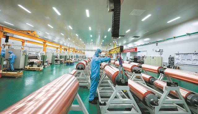 在江铜集团铜加工产品生产车间,工人正铆足干劲忙生产。(江西日报全媒体记者 张翰林 摄)
