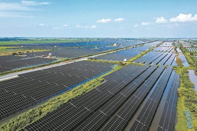 在南昌县蒋巷镇三洞湖,一排排光伏面板矗立湖面,正源源不断输出清洁电能。该项目将水产养殖与光伏发电相结合,形成“板上发电、板下养殖”新模式,提高了土地使用效率,助力乡村振兴。(江西日报全媒体记者 史港泽 摄)