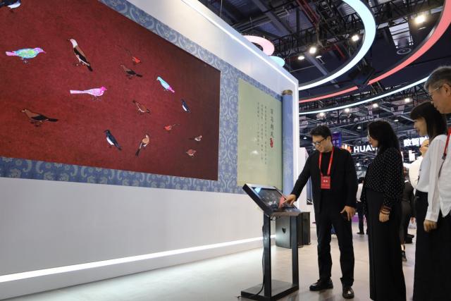 “观众们可以通过交互屏幕将自己绘制的飞鸟融入中国经典艺术作品当中,沉浸式体验穿越千年共创、共生、共融的乐趣。”靳军介绍,在互动中弘扬中国经典,提升文化自信。
