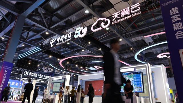 图为2023世界VR产业暨元宇宙博览会中的中国电信展区。新华网 王晓震摄