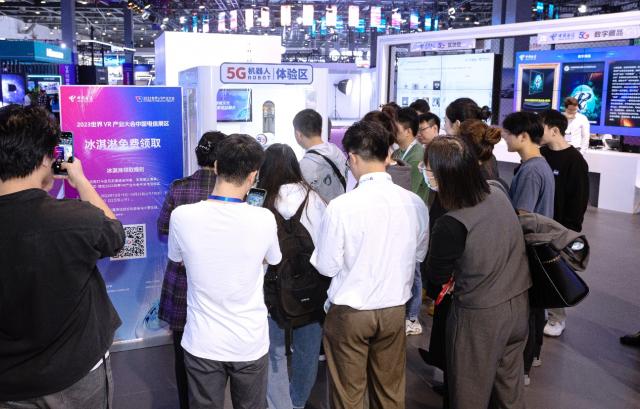 2023世界VR产业大会于10月19日上午在江西南昌开幕,以“VR让世界更精彩一一虚实融合,智兴百业”为主题,大会深度应用VR、5G、人工智能、元宇宙等新技术,打造全新的虚实互联空间,为全体参会代表打造个性化的数字“分身”,观众进入中国电信展馆,不论是数字交互与艺术融合的《百鸟朝凤》,还是真人到虚拟数字人的转化,19个展项内容,从各领域全方位地展示中国电信在元宇宙产业的布局及发展成果,带给参会嘉宾全新体验。