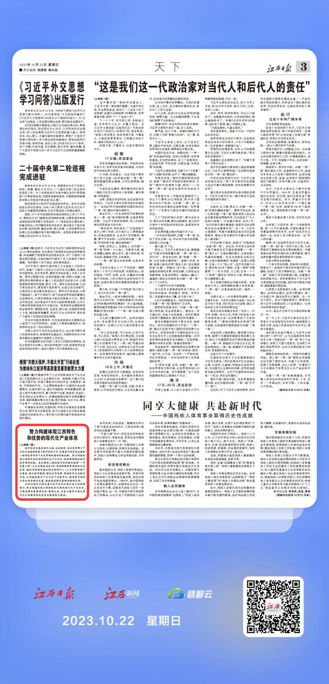 江西日报评论员文章|努力构建体现江西特色和优势的现代化产业体系