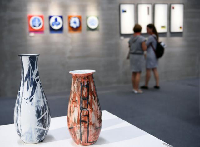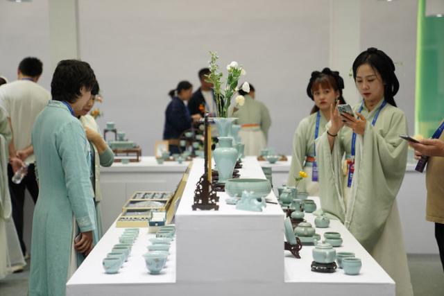 10月18日,人们在瓷博会汝窑展台参观。新华社记者周密摄