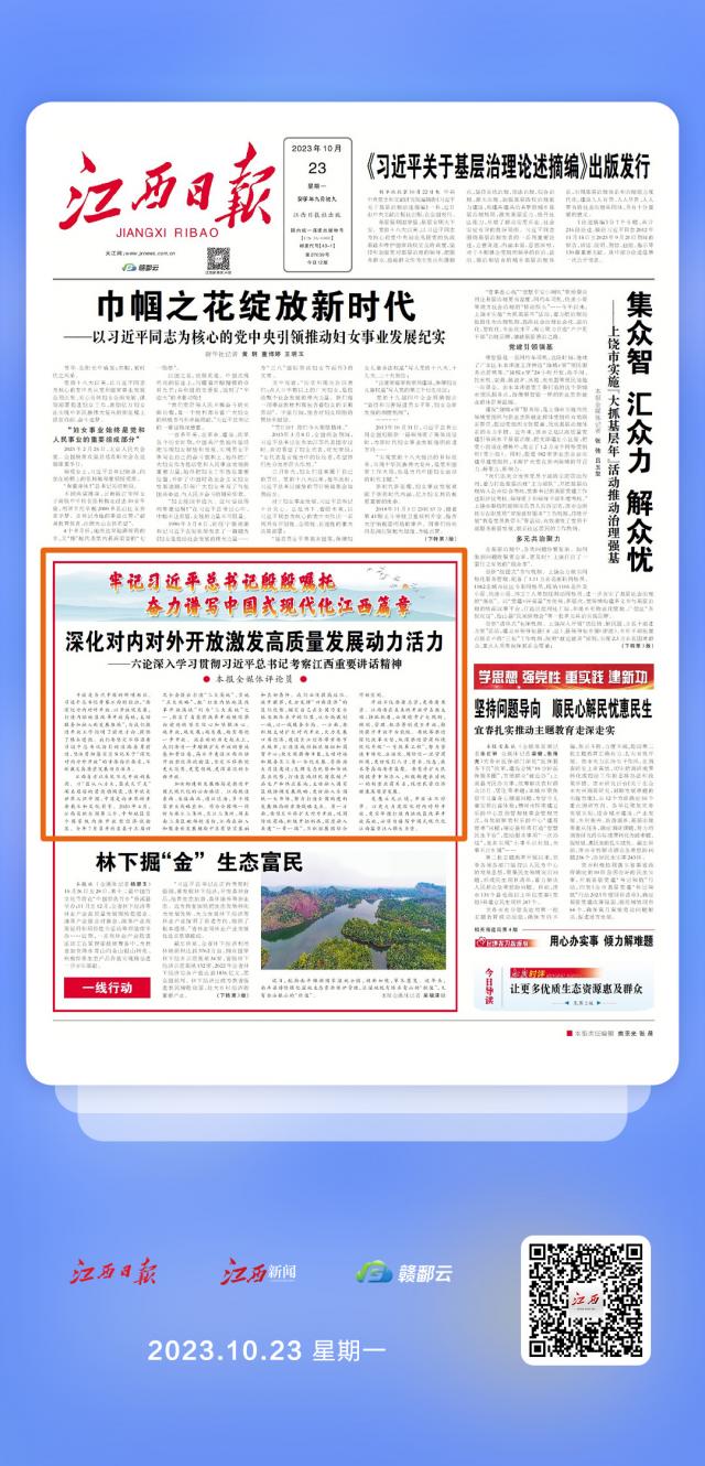 江西日报评论员文章丨深化对内对外开放激发高质量发展动力活力