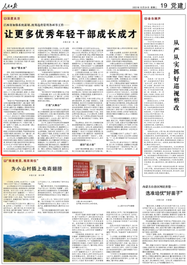 《人民日报》报道江西:让更多优秀年轻干部成长成才