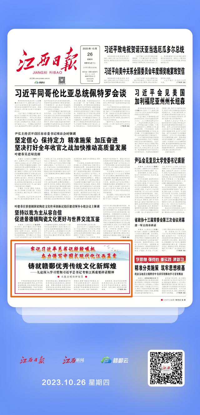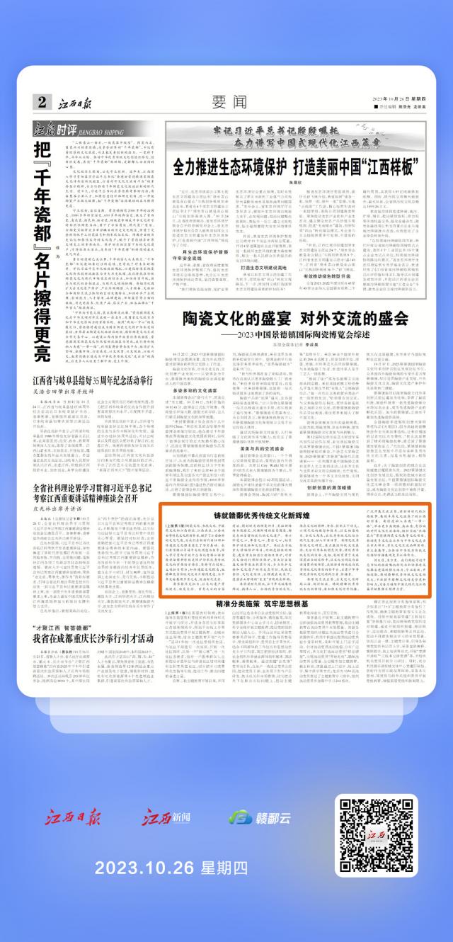 江西日报评论员文章丨铸就赣鄱优秀传统文化新辉煌