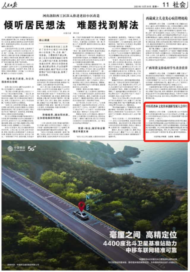 人民日报报道:中医药杏林文化传承创新发展大会举行