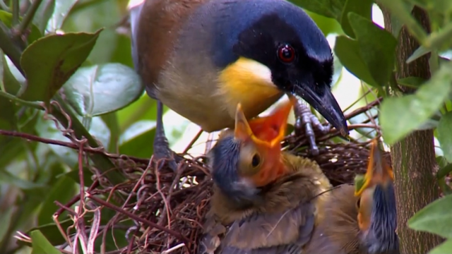 这种名为蓝冠噪鹛的鸟类