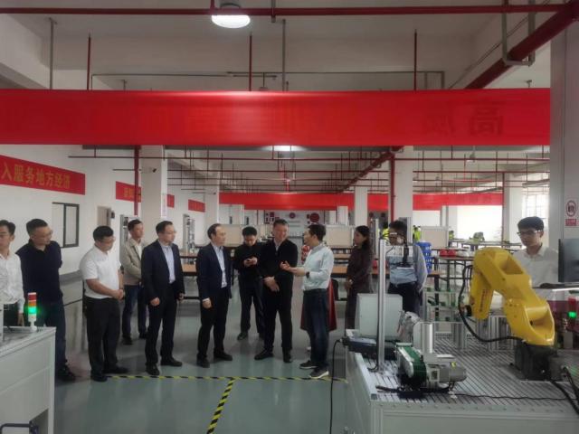 期间,省通管局局长彭兴刚一行到数转中心和实训基地考察指导,着重了解了数转中心建设规划、职责定位及未来工作思路等,参观了实训基地的电气工程实操、PLC、自动化机器人综合实训台等教学现场,彭局长对数转中心建设落地,实训基地技术型人才培养前景表示高度认可,同时也希望数转中心在当地政府的支持领导下,发挥各成员单位技术能力与资源优势,为当地数字经济、新型工业化的发展贡献力量。