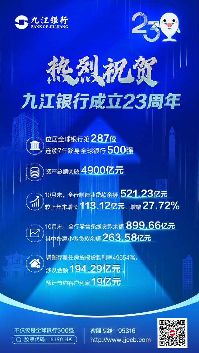 成立23周年资产规模超4900亿元: 九江银行存贷款业务规模位居全省前列
