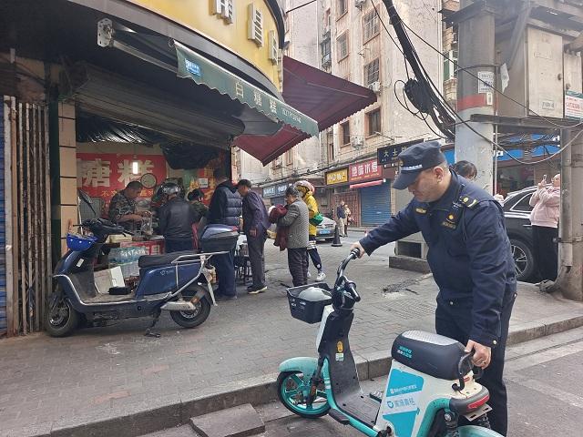 滕王阁城管执法中队还注重柔性执法,因地制宜,合理规范网红店出店经营,同时,由于客流量大,社区内停放着许多共享单车及非机动车。中队还安排共享单车执法人员及时联系单车公司人员进行清理,并增设非机动车停车线,对社区内非机动车停放进行规范。