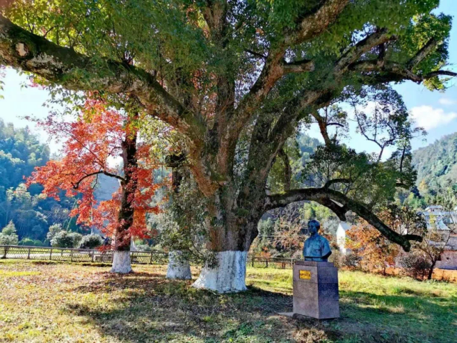 年年岁岁花相似,岁岁年年人不同。三湾枫树坪饱经沧桑的红枫、古樟不断凋零,又不断生长,绽放出红色力量。它们见证了刻骨铭心的岁月,感受到一代伟人的情怀与思绪,是那样熠熠生辉,又是那样默默无闻。