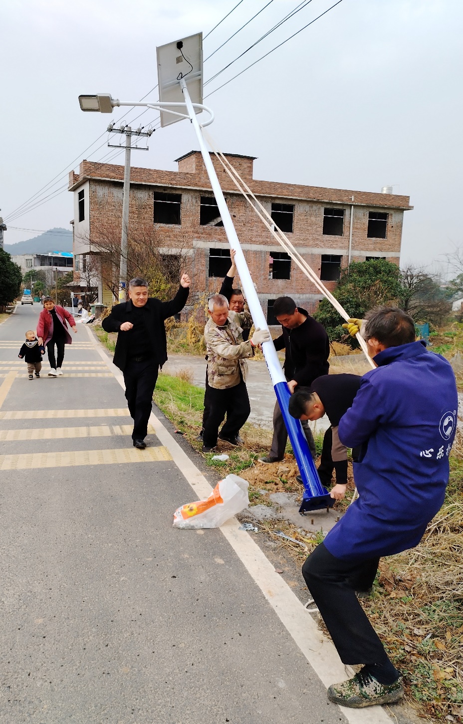 当驻村第一书记袁金华带领工作队在调研中获知路灯是当前村民当前最期盼诉求时,他立刻汇报相关部门,多方筹措资金,协同村“两委”及时响应村民的诉求,通过性能、价格、质保等方面比选后购置100盏太阳能路灯。全体驻村工作队员与村“两委”一道积极参加路灯建设。元旦前夕,百余盏覆盖主干道的新型太阳能路灯终于顺利完工,驻村工作队用“电信蓝”点亮了村民的回家路。