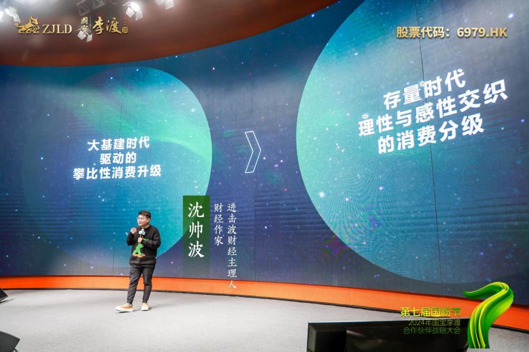 本届国粉节特邀新生代财经作家、头部财经媒体「进击波财经」主理人沈帅波出席并做主题演讲。以《消费时代的交汇:李渡与中国白酒的新十年》为题,沈帅波基于对消费品行业的深刻洞察,分享了“高端正在被重新定义”等新锐观点,并提出极具代表性的“李渡现象”。他认为,一个真正能够穿越周期的白酒品牌正呼之欲出。