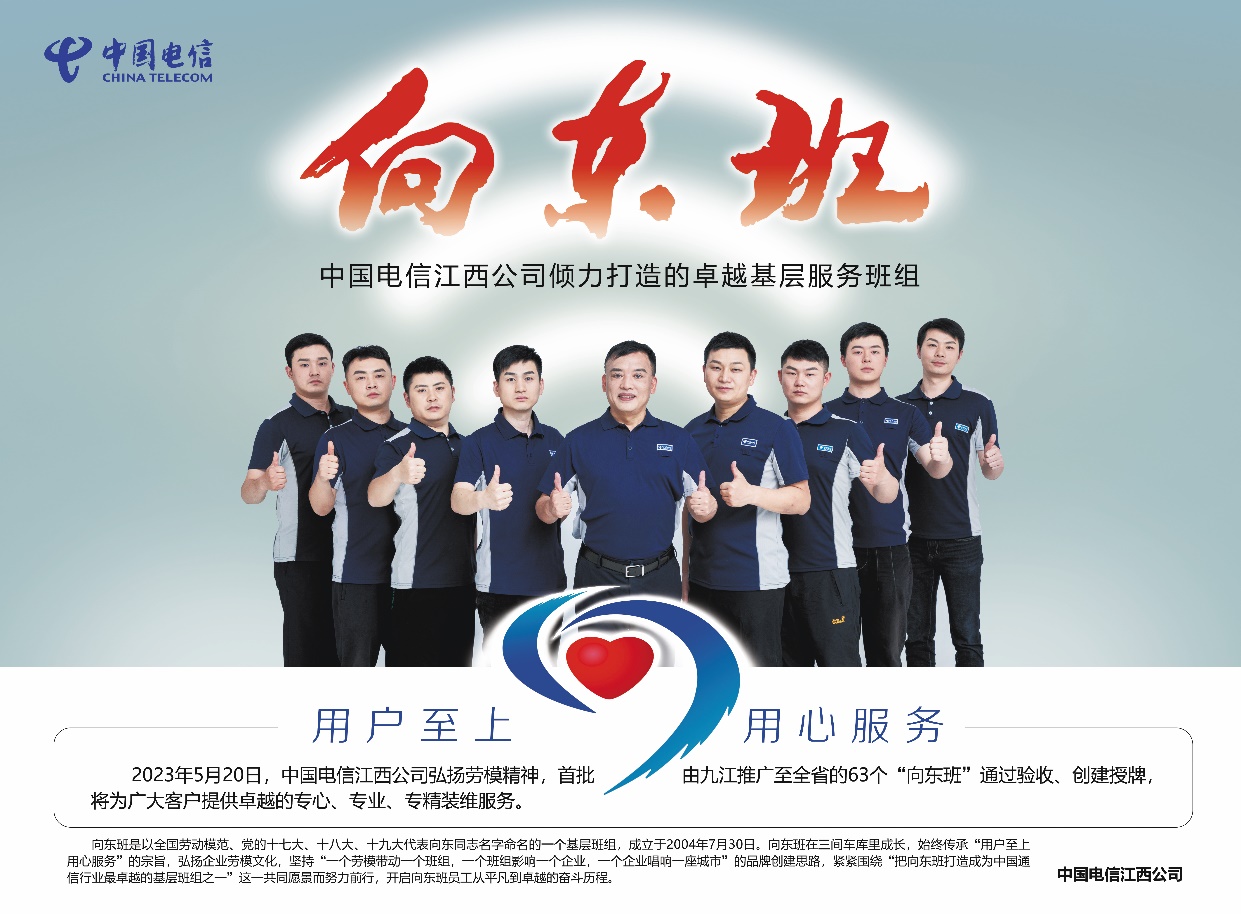 2017年4月,向东班成立了向东学院,向东劳模工作室的组员成为向东学院的骨干,该学院建有理论培训区、实操培训区和线上培训,并按区域在湖口、瑞昌、都昌、永修、修水、十里农村设立向东学院辅导站,通过打造产学研相结合的特色平台,开展技术及服务课题推广和培训,将装维工程师打造成技术型、营销型、服务型、创新型的工匠队伍。