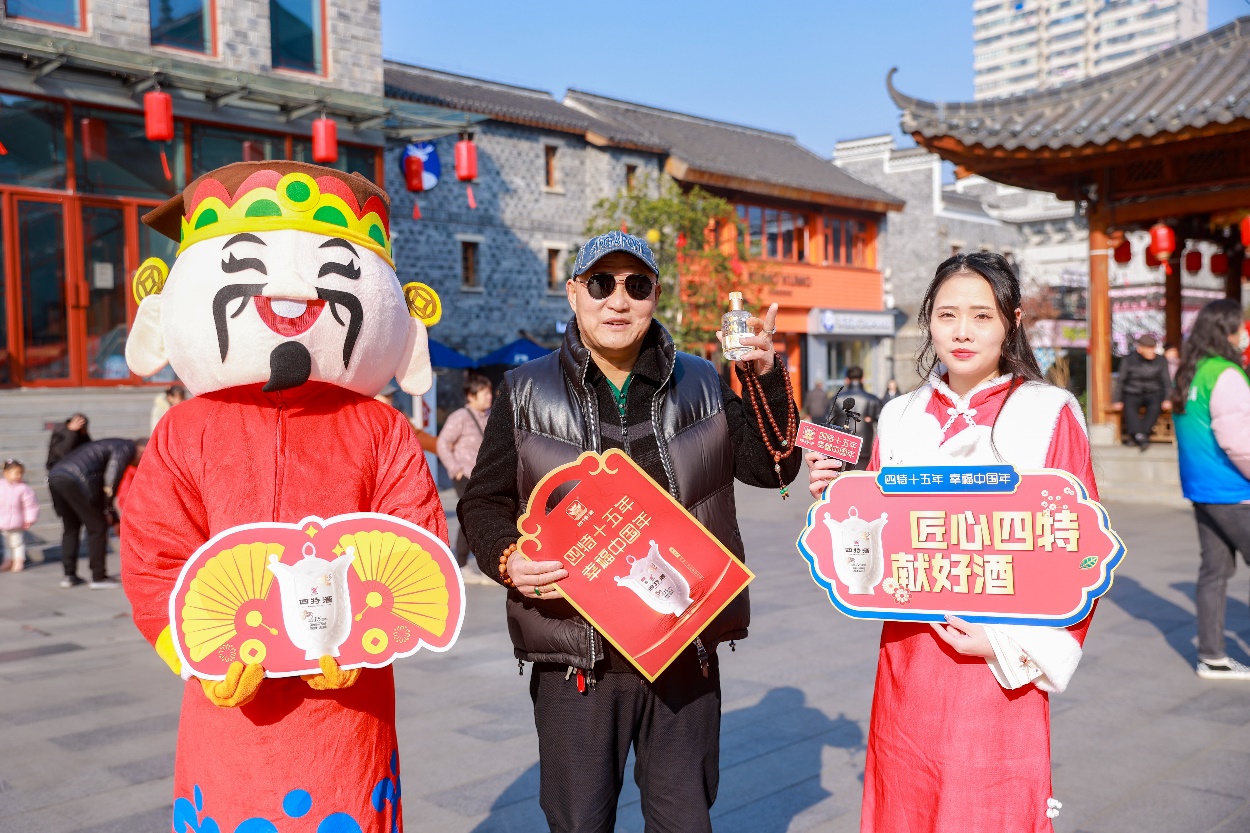 在“四特十五年,幸福中国年”2024新春活动中,四特酒特推出以“第五代四特十五年”为主的感恩回馈活动,参与街头采访互动,分享关于“幸福”的美好瞬间和来年期盼,即可获得四特酒专属定制礼品:金三两品鉴小酒及“四特送福礼敬万家”的礼品券。