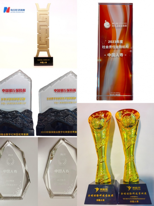 近期,多家媒体发布年度奖项评选结果。中国人寿保险股份有限公司(以下简称“中国人寿寿险公司”)分别荣获中国银行保险报2023年中国保险业数字化转型优秀案例、每日经济新闻2023年度“金鼎奖”年度卓越人寿保险公司、金融界2023“燕梳奖”全球保险科技贡献奖和全球保险科技案例奖、和讯网第二十一届“财经风云榜”年度影响力保险公司和社会责任年度大奖、2023年时代金融“金桔奖”社会责任金融机构奖等多个重磅奖项,体现了市场和媒体对该公司在高质量发展、数字化转型、企业社会责任、品牌影响力等方面的充分肯定。