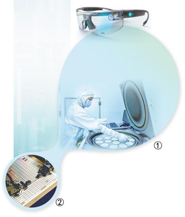 ▲图①:晶能光电芯片车间员工在操作设备进行长膜工艺流程。