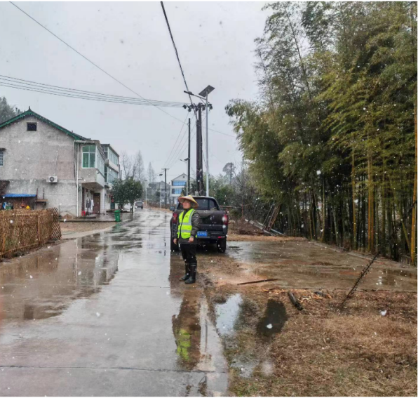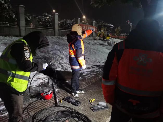 在风雪交加的天气里,他们穿行在文坊镇的乡间小路,对镇上村里的居民住所进行仔细的网络巡检,确保线路、设备没有因极寒天气出现信号中断等。他们不畏严寒、深入乡村,顶着风雪穿行,确保网络设备正常运行,为老百姓提供稳定的网络服务。