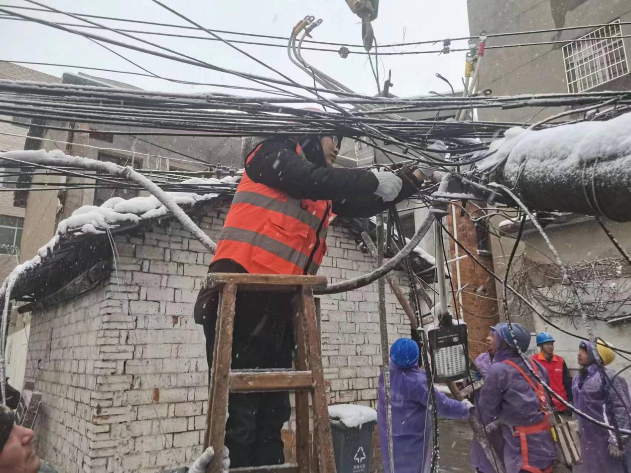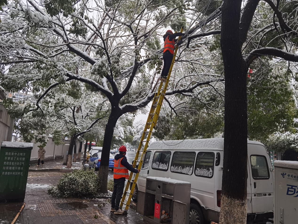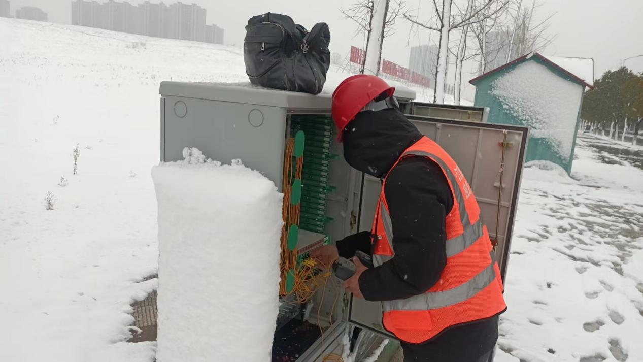 突然降雪导致部分光缆被刮断导致通讯故障,持续降雪增加了光缆抢修清障难度,传输中断导致西湖区朝新路与朝阳洲北路无线设备通讯以及宽带,停电中断,联通综维人员不畏严寒,顶着风雪发电保障每个机房能正常运作,不畏困难风雪中抢修光缆故障。